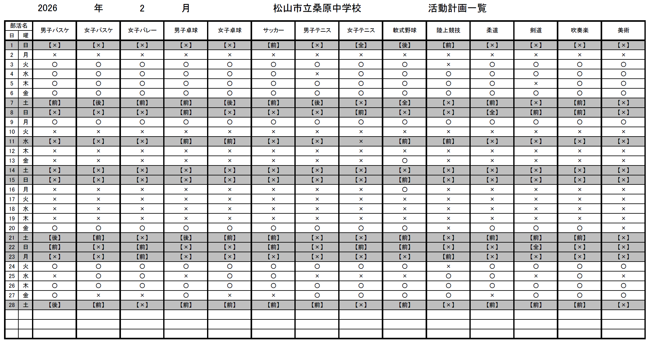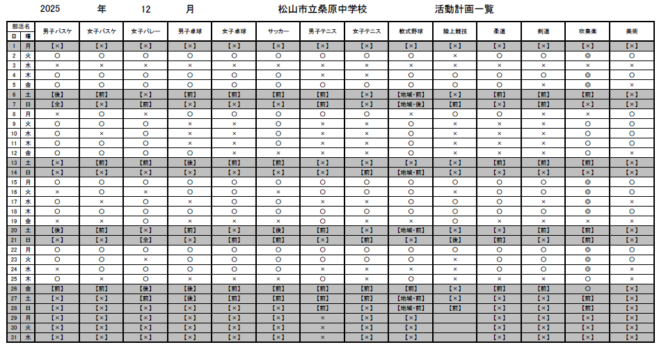 部活動練習計画